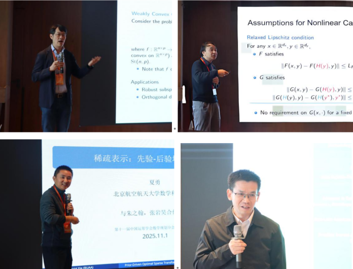 在大会特邀报告阶段,香港中文大学苏文藻教授以“Randomized Riemannian Submanifold Subgradient Method for Optimization over Stiefel Manifold”为题,介绍了流形优化领域的最新算法突破,分享了该领域的前沿研究进展。北京大学的张志华教授围绕“Stochastic Optimization, Stochastic Approximation and Statistical Inference”展开讲解,深入分析了跨学科研究中的核心逻辑及其相互关系。北京航空航天大学夏勇教授的报告以“稀疏表示:先验-后验域变换框架”为题,为信号处理与机器学习的融合提供了全新的思路和方法。中国人民大学的朱利平教授则结合“概率论与数理统计国际学术期刊论文发表情况”,为青年学者如何提升国际学术影响力提供了宝贵的实用建议。每场报告都引发了热烈的讨论,学术氛围浓厚,启发了与会者对相关领域的深刻思考。
