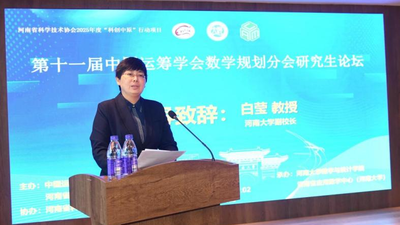 开幕式由中国运筹学会数学规划分会青年支部主任、深圳大学的胡耀华教授主持。河南大学副校长白莹教授、数学规划分会理事长孔令臣教授、河南省运筹学会理事长尚有林教授等领导分别致辞。白莹在致辞中向来自各地的专家学者和青年学子表示热烈欢迎和诚挚问候,并介绍了河南大学在数学学科建设、科研创新以及研究生培养方面取得的显著成就。她强调,本次论坛对促进校际学术交流、推动青年学子成长具有重要意义,并期望各位专家学者能为青年学子提供更多指导和帮助,助力河南大学在人才培养和学科建设上取得新的突破。孔令臣在致辞中表示,希望与会者能够在论坛中汲取学术营养,碰撞思想火花,为数学规划领域的发展注入青春动力。尚有林结合地方学科发展的需求,鼓励青年研究者扎根应用,服务实践,推动学术成果的转化与落地。