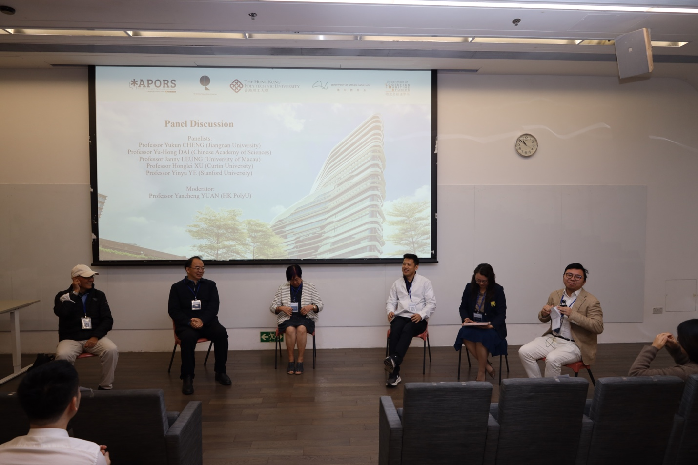 论坛特别设置了“From PhD to Professional: Career Development in Operations Research” 的圆桌讨论。该环节由香港理工大学袁雁城副教授主持,特邀戴彧虹研究员、Honglei Xu副教授、澳门大学Janny Leung教授、以及江南大学程郁琨教授担任嘉宾。他们围绕科研积累、跨机构协作、多元化职业发展等议题展开深入探讨,并就如何在学术界与工业界之间规划职业路径、如何在科研早期形成高质量成果等问题提供了宝贵建议。现场互动热烈,ORSC代表团的青年学者积极参与讨论,与嘉宾进行了深入交流。
