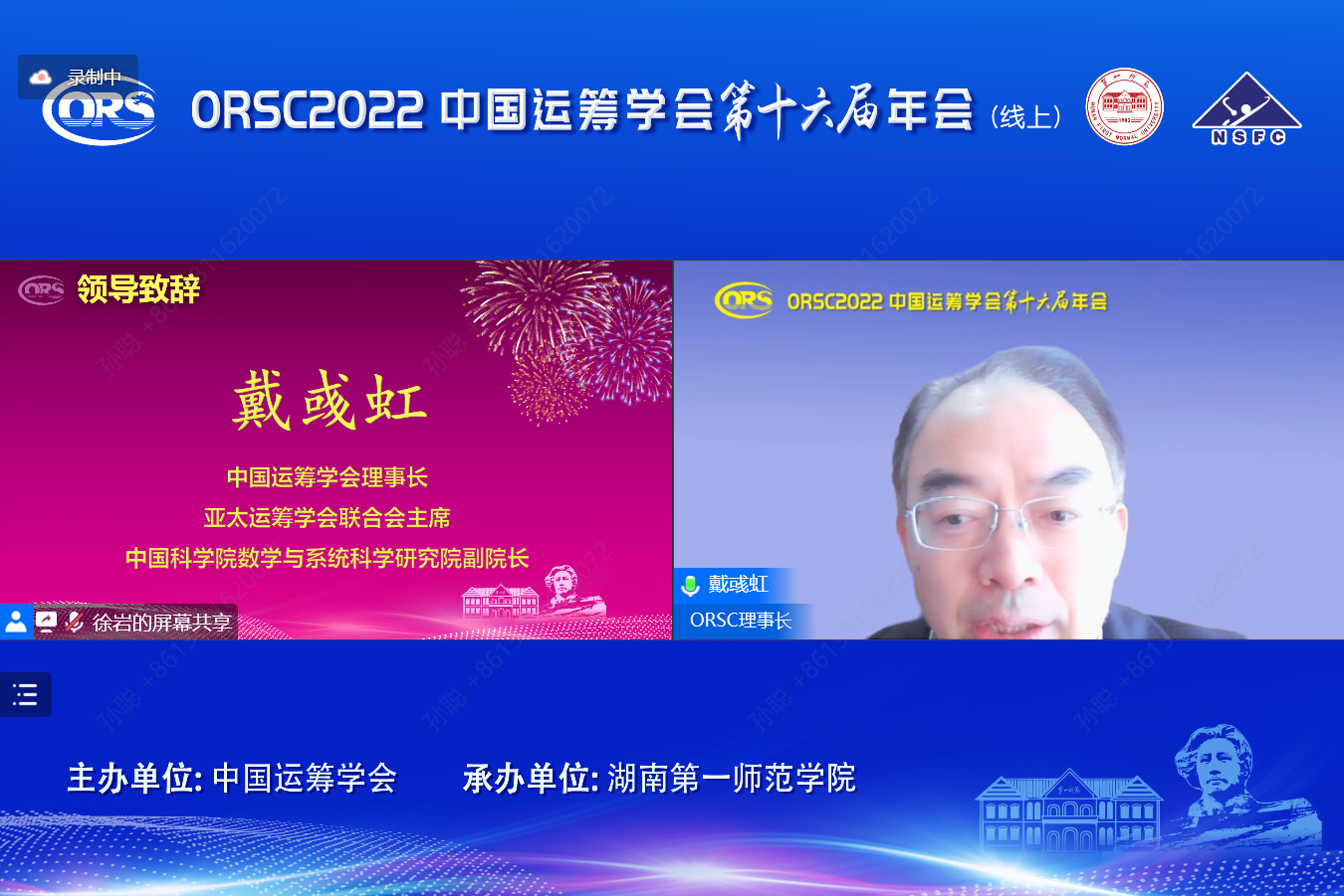 2022年12月14日-17日,中国运筹学会第十六届年会(线上)在腾讯会议平台胜利召开,这是学会年会首次以线上形式举行,并通过B站和微信视频号“中国运筹学会”同时在线直播,国内外1000余人在线参加了本次盛会。本届年会由中国运筹学会主办,湖南第一师范学院承办。