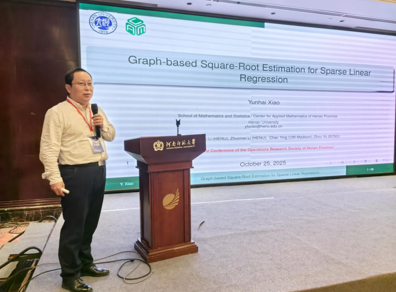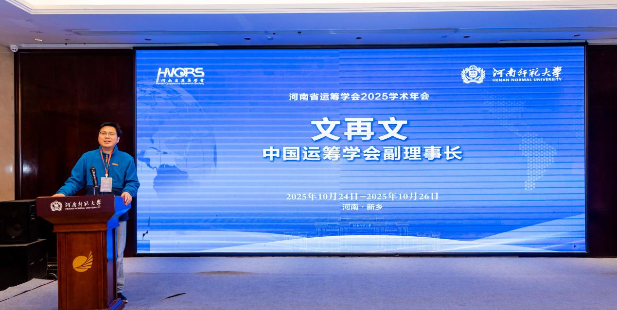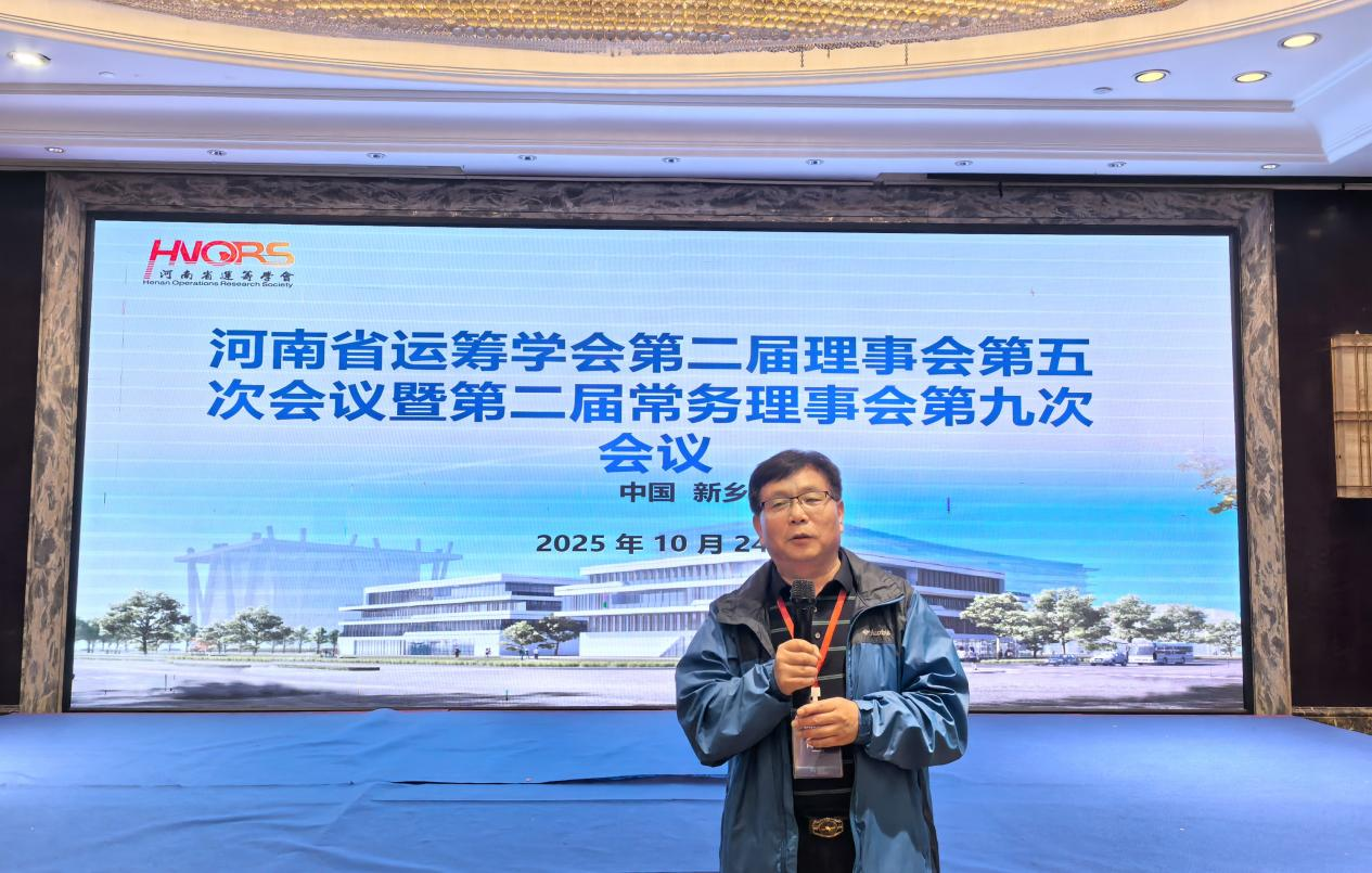 2025年10月24-26日,河南省运筹学会2025年学术年会在新乡市召开。中国运筹学会副理事长、北京大学文再文教授、香港理工大学陈小君教授、南京大学陈耀俊教授、哈尔滨工业大学边伟教授、河南师范大学副校长苗雨教授、河南省运筹学会理事长尚有林教授、副理事长罗党教授、申培萍教授、肖运海教授、刘文安教授、李保安教授等出席会议。