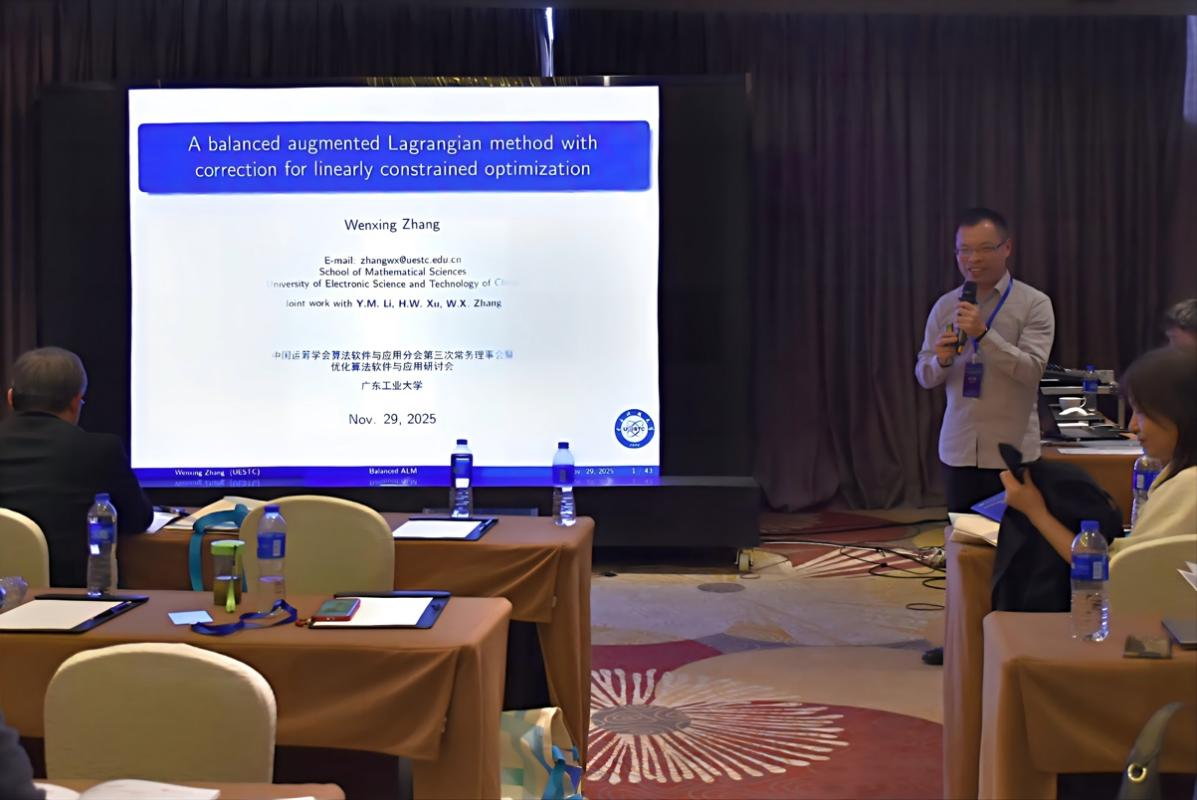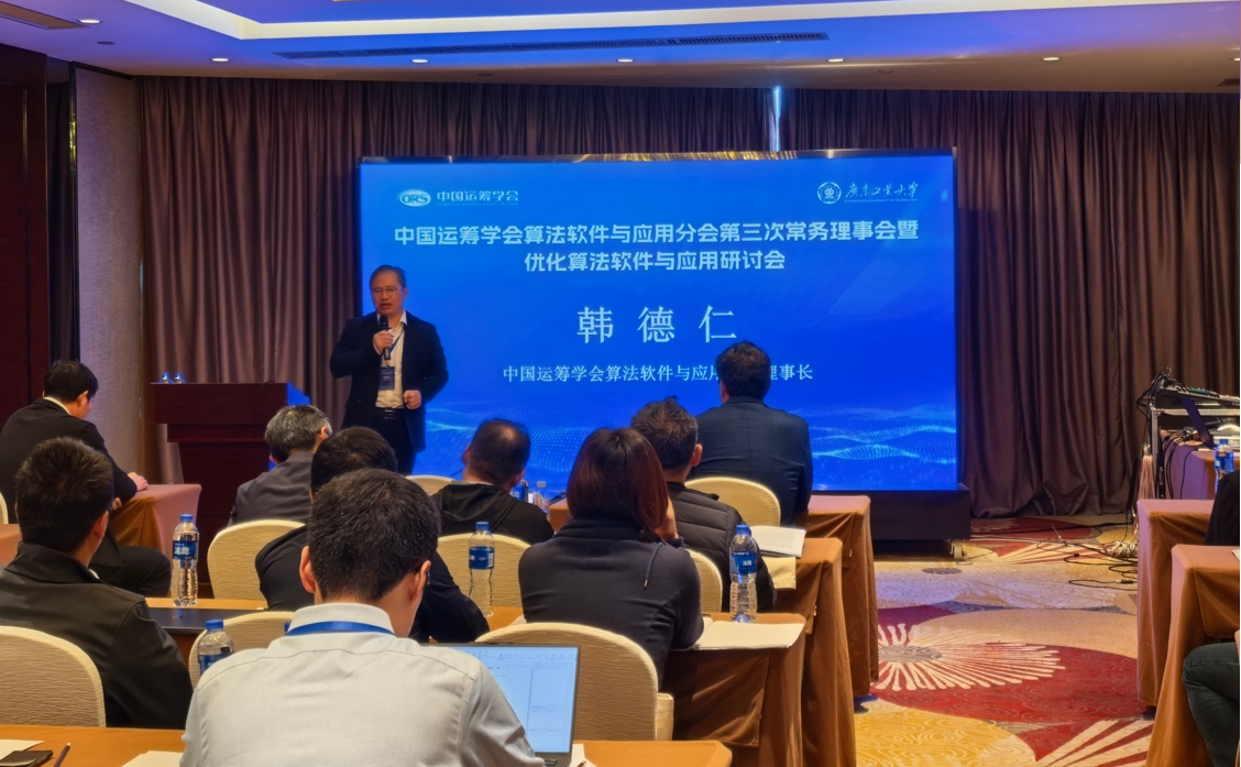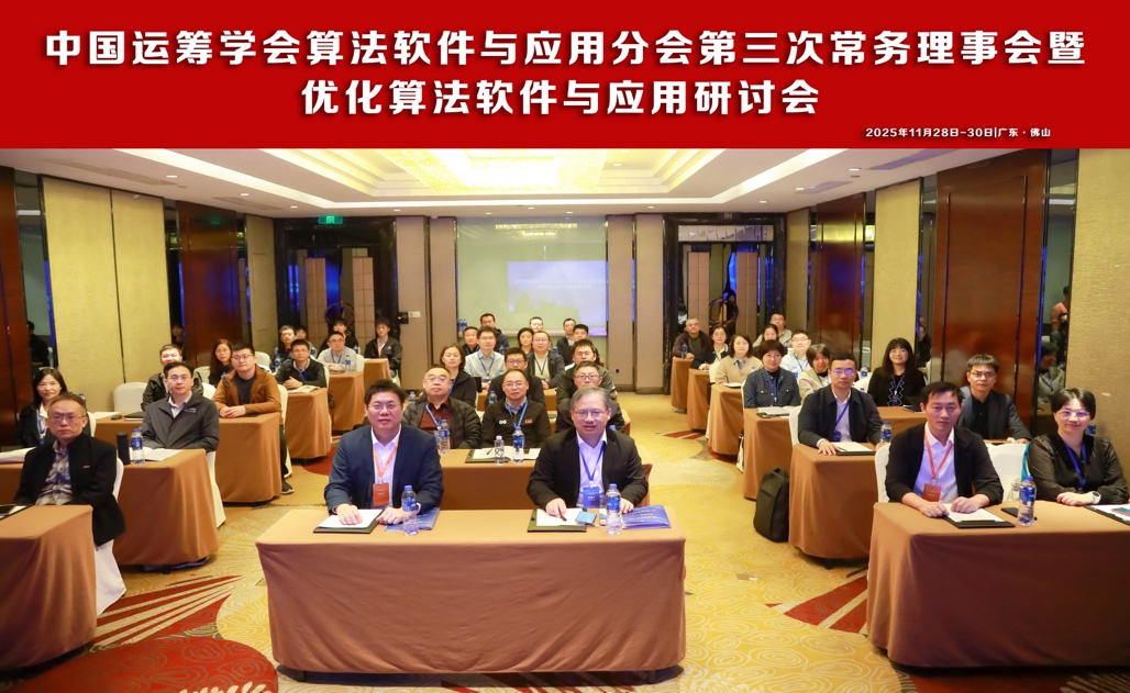 2025年11月28日至30日,中国运筹学会算法软件与应用分会第三次常务理事会暨优化算法软件与应用研讨会在广东佛山成功举办。会议由中国运筹学会算法软件与应用分会主办,广东工业大学数学与统计学院承办。来自中国科学院数学与系统科学研究院、北京航空航天大学、哈尔滨工业大学、西安交通大学、南京大学、中山大学、华中科技大学、北京理工大学、华南理工大学、东北大学、电子科技大学、南京师范大学、福州大学等高校与科研院所的专家学者参加了此次会议。